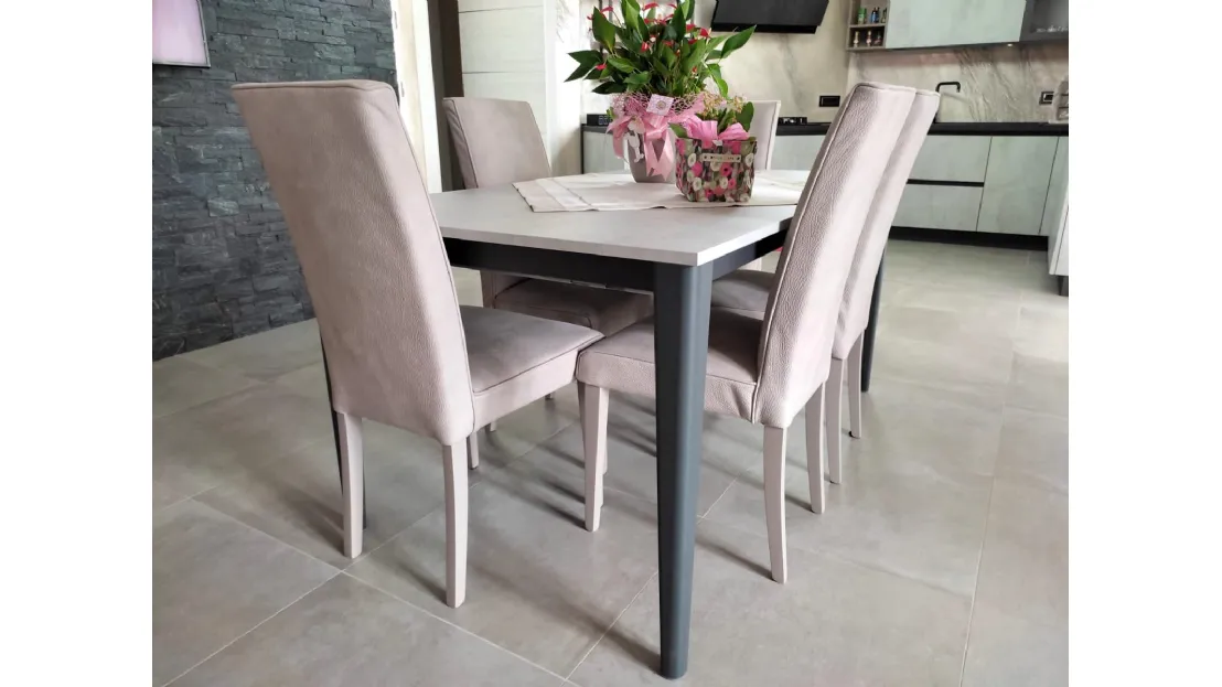 Un open space ampia e luminosa, completata con l'arredo del tavolo e delle sedie rosate per un tocco di stile e unicità.