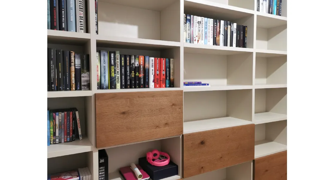 Per Maria Luisa e Damiano abbiamo creato un'atmosfera rilassante in perfetto stile con la loro casa, ricca di spazi e comodità per contenere libri e dedicarsi comodamente al lavoro e allo studio.