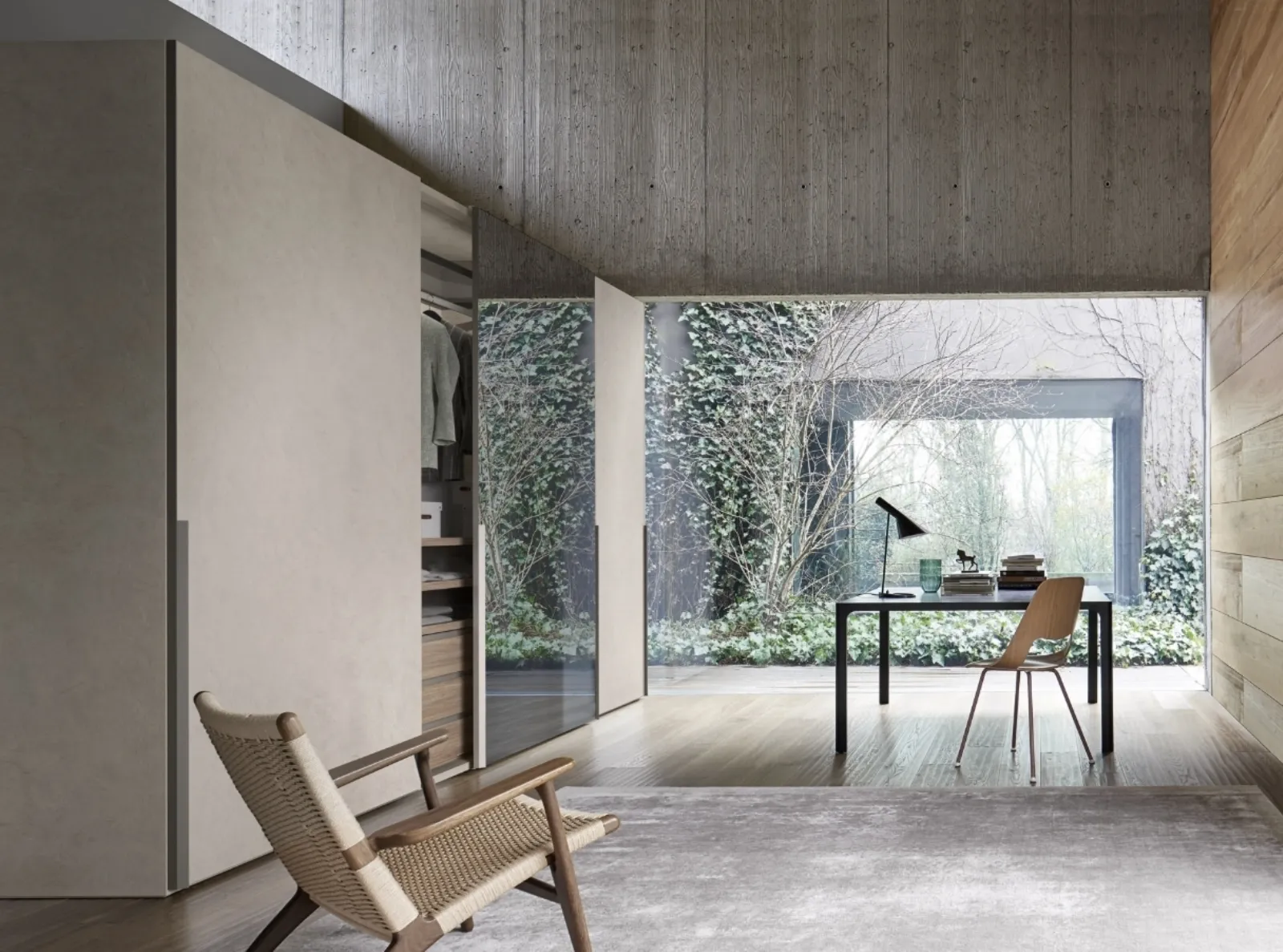 Ecco qui l'armadio Ala Loto Tortora in melaminico di Sangiacomo! Una ricca gamma di armadi a muro con ante scorrevoli.