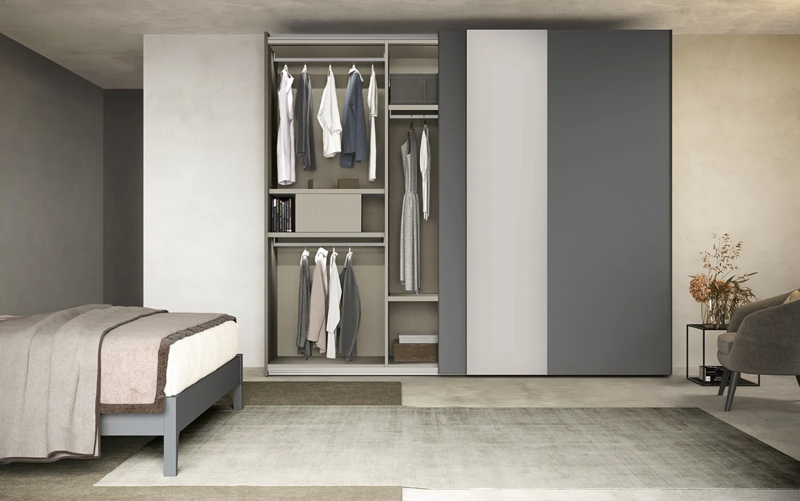 Ecco qui l'armadio Freedom N17 in melaminico di Colombini Casa! Una ricca gamma di armadi a muro con ante scorrevoli.