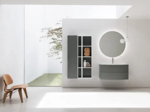 Mobili bagno sospesi in laccato opaco del marchio Compab: clicca e scopri l'arredo bagno moderno B-GO BG027 per il tuo bagno.