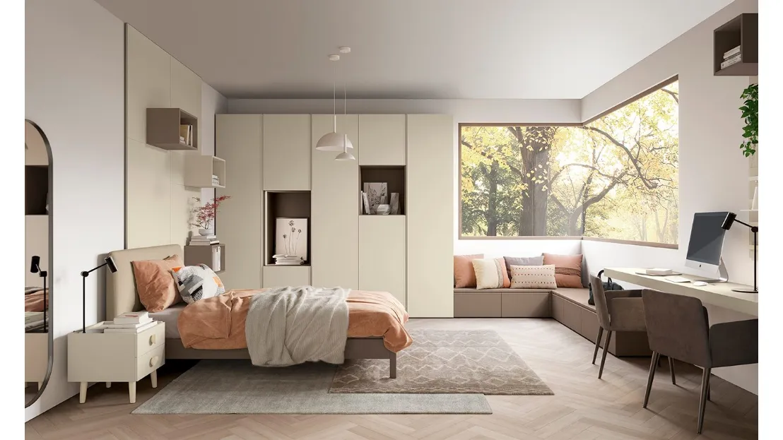 Camerette su misura per ragazzi: scopri il modello in melaminico Golf Y23 di Colombini Casa per stanzette moderne.