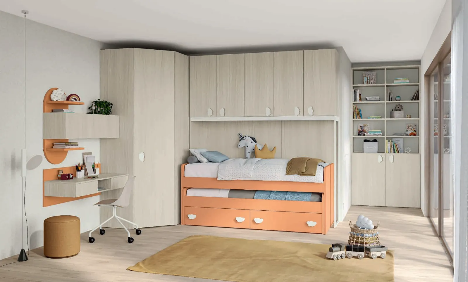 Colombini Casa mette a disposizione una ricca gamma di elementi accessori da accostare su misura: troverai letto, guardaroba, scrivania, sedie e librerie. Questa soluzione in melaminico ultima ottimamente le doti pratiche e il valore estetico della camaretta, in quanto è capace di congiungere funzionalità ed ergonomia. Se cerchi spunti creativi per progettare ottimamente la stanza dei tuoi figli, ti presentiamo la Cameretta Volo Kid C026 di Colombini Casa con finitura in melaminico. Porta estetica e tonalità vivaci nella stanza dedicata ai più giovani con questa soluzione, una tra le Camerette a ponte per ragazzi di Colombini Casa. Nell'arredamento della stanza dei piccoli affidati a noi: in negozio presentiamo tutte le più esclusive composizioni moderne per la loro camera.