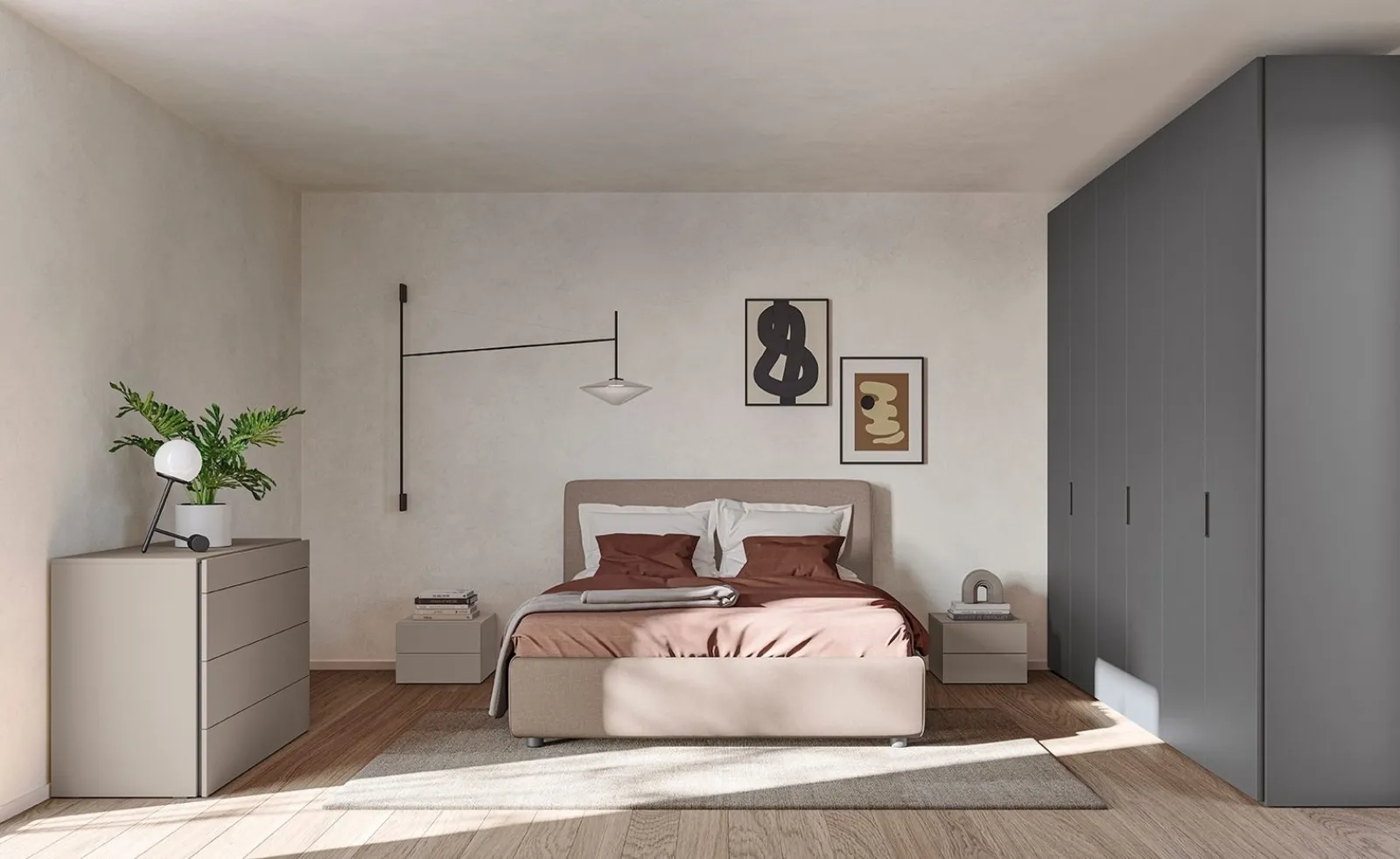 Con i nostri gruppi notte moderni della firma Colombini Casa, specialista dell’Arredamento Casa per la camera da letto, potrai ricreare la camera da letto che hai sempre voluto. La camera da letto include anche i Comodini: mobili per contenere d'uso quotidiano che lasciano la possibilità di riporre oggetti e avere a disposizione superfici di appoggio multiuso. Valorizza i tuoi spazi scegliendo composizioni di arredi abbinati o ricrea originali accostamenti di stile e cromie grazie al catalogo di mobili ed elementi accessori per la camera da letto che proponiamo, come il modello in melaminico mostrato in foto, anche realizzabili su misura per te.