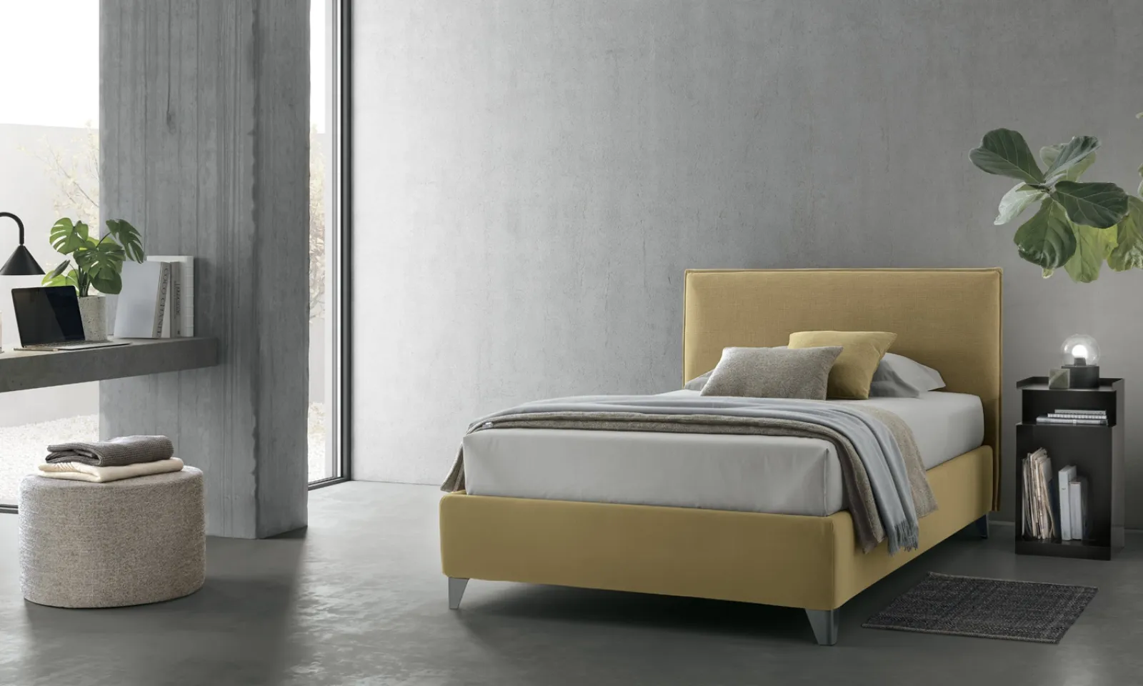Il letto singolo Mood in tessuto nella fotografia, tra i modelli imbottiti moderni di V&Nice, è ideale per garantire il relax totale.