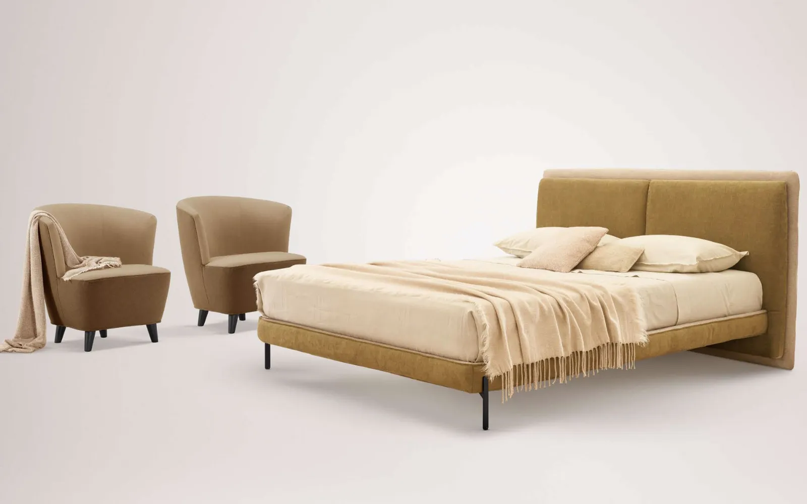 Il letto Beatrix in tessuto, tra i modelli imbottiti matrimoniali moderni di Rosini Night, è pensato per garantirti il sonno più profondo.