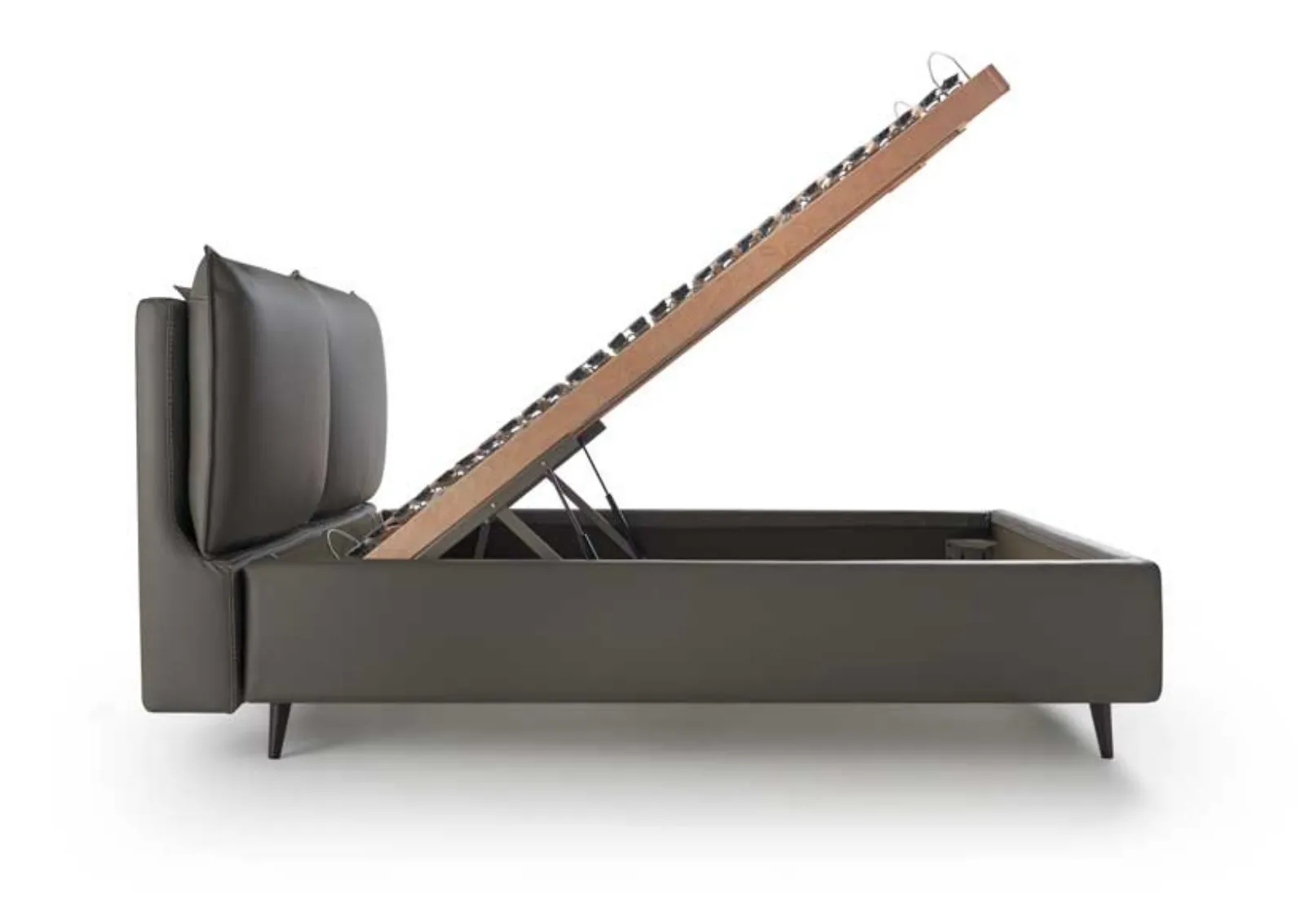 Il letto Narciso in ecopelle, tra i modelli con contenitore matrimoniali moderni di Hoppla, è perfetto per assicurarti il relax totale.