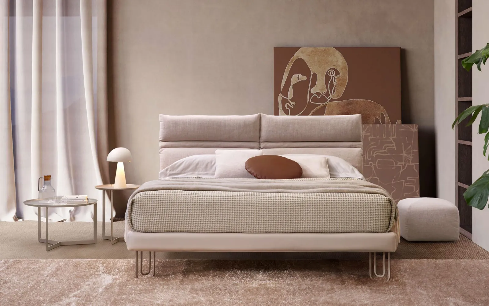 Vuoi organizzare la camera da letto? Ecco qui il letto in tessuto Linus di Rosini Night per spazi moderni.