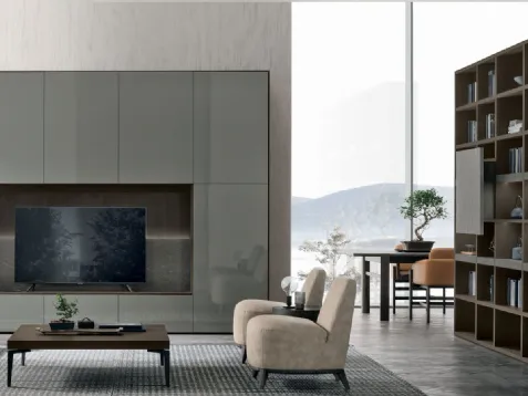 Texture di pregio e forme decise: scopri la libreria Arcadia AS 110 di Colombini Casa tra le più belle Librerie design sospese.