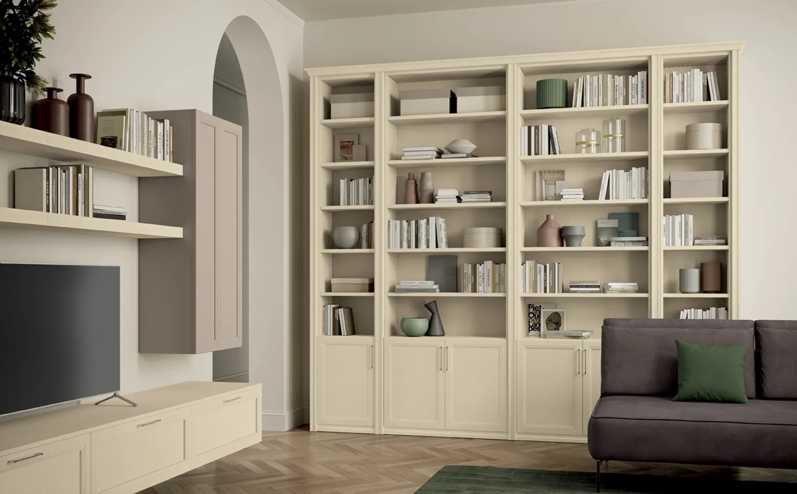 Vuoi ristrutturare il living? Ottieni informazioni sulle librerie classiche a muro e arreda i tuoi interni con il modello Arcadia AS004.