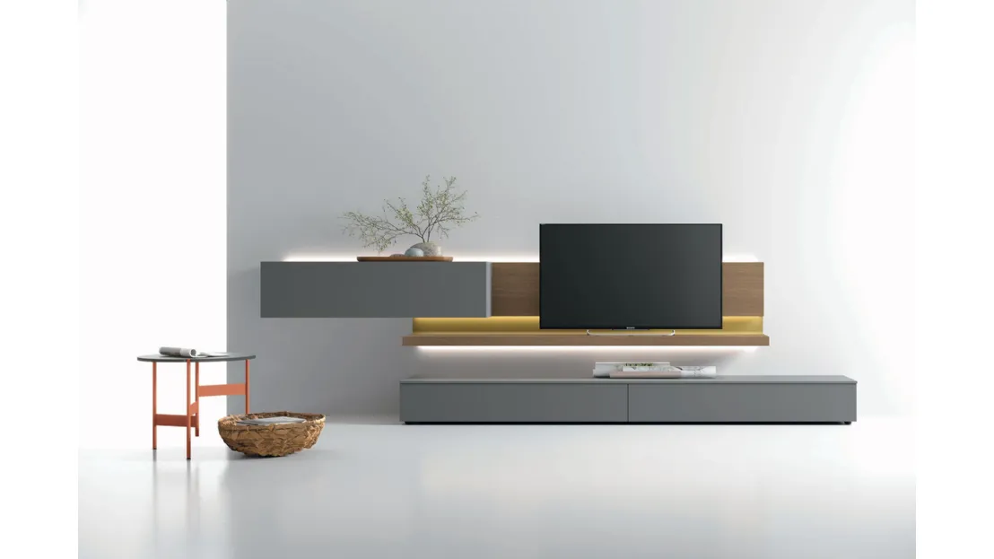 Mobile porta tv per il soggiorno Tomasella in laccato opaco: clicca e scopri di più sul modello Atlante UNIT AT 142, pensato per spazi moderni.