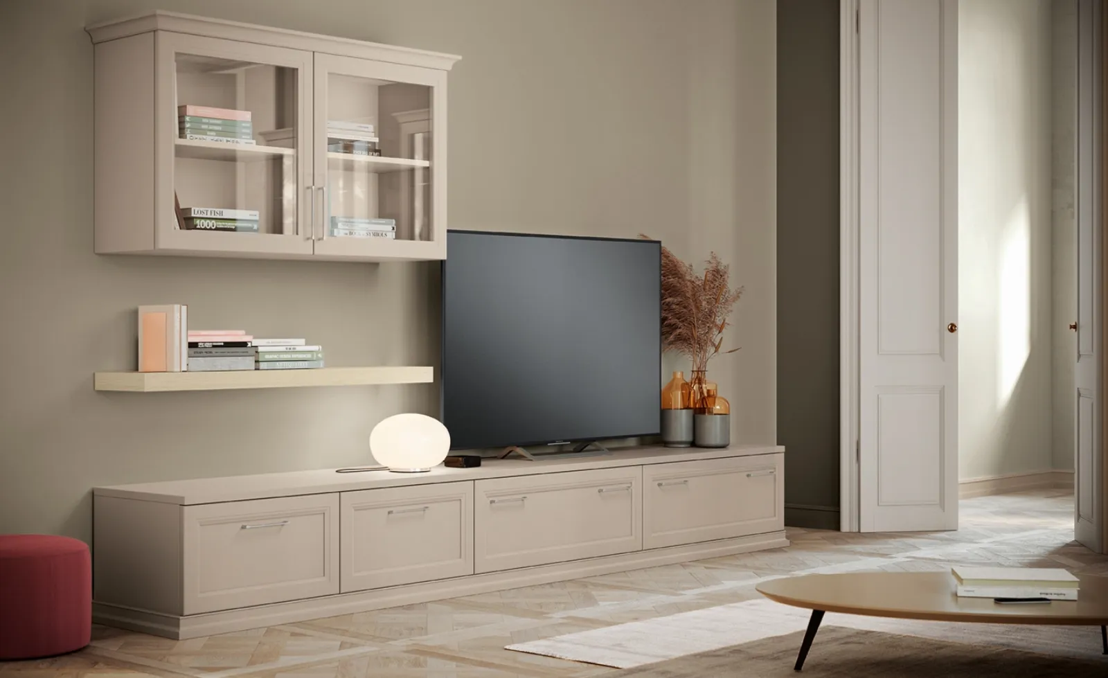 Se vuoi ultimare un soggiorno pratico e operativo dalle linee classiche, ti offriamo la parete attrezzata Arcadia AS010 Colombini Casa.