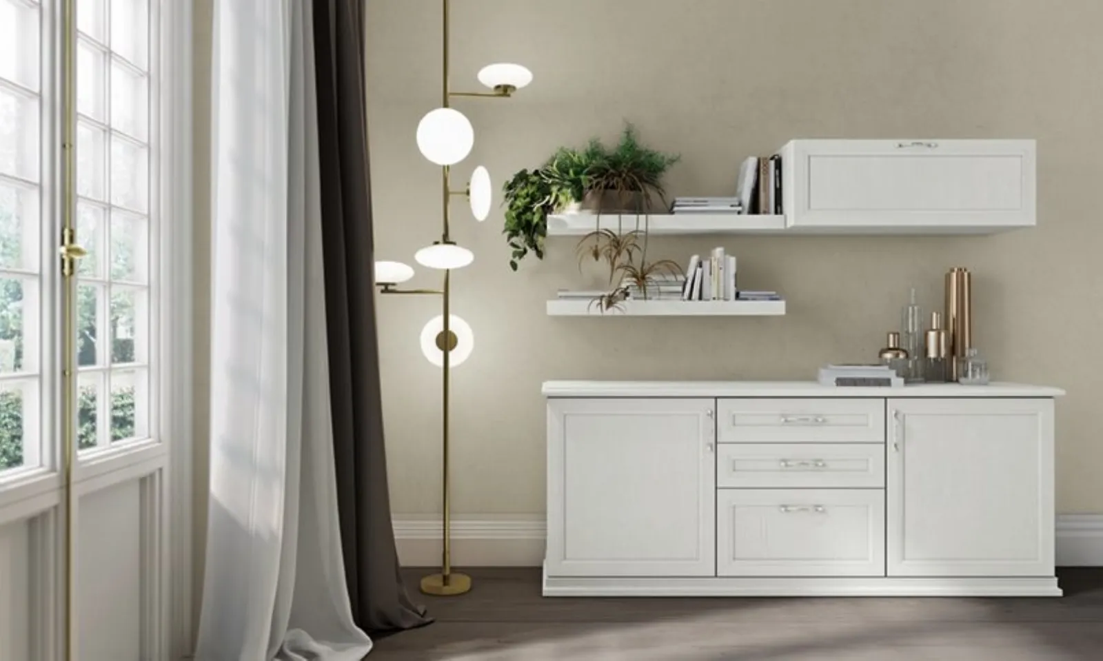 Se vuoi completare un living dinamico e operativo dalle linee classiche, ti offriamo la parete attrezzata Arcadia L022 Colombini Casa.