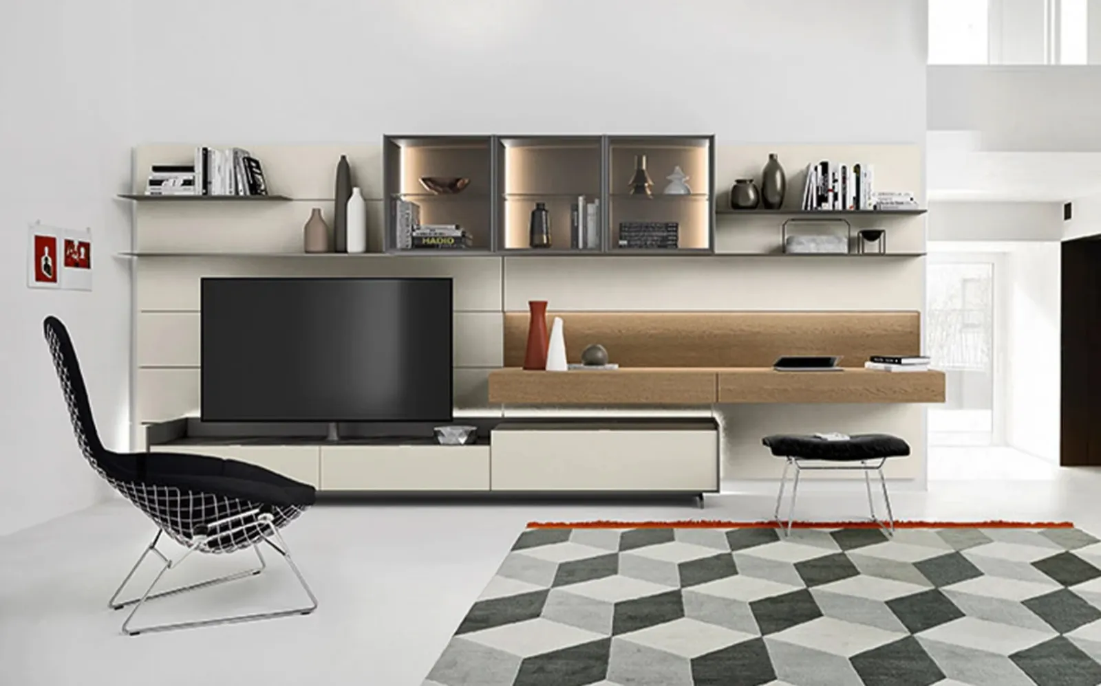 Vuoi progettare un soggiorno dinamico e operativo? Ecco a te la parete attrezzata Cabaret Step Sangiacomo dalle linee decise moderne.