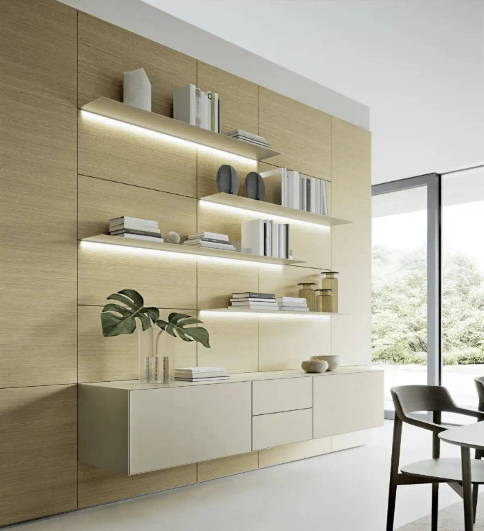 Se desideri completare un living pratico e operativo dalle linee moderne, ti presentiamo la parete attrezzata Domino Boiserie 01 Sangiacomo.