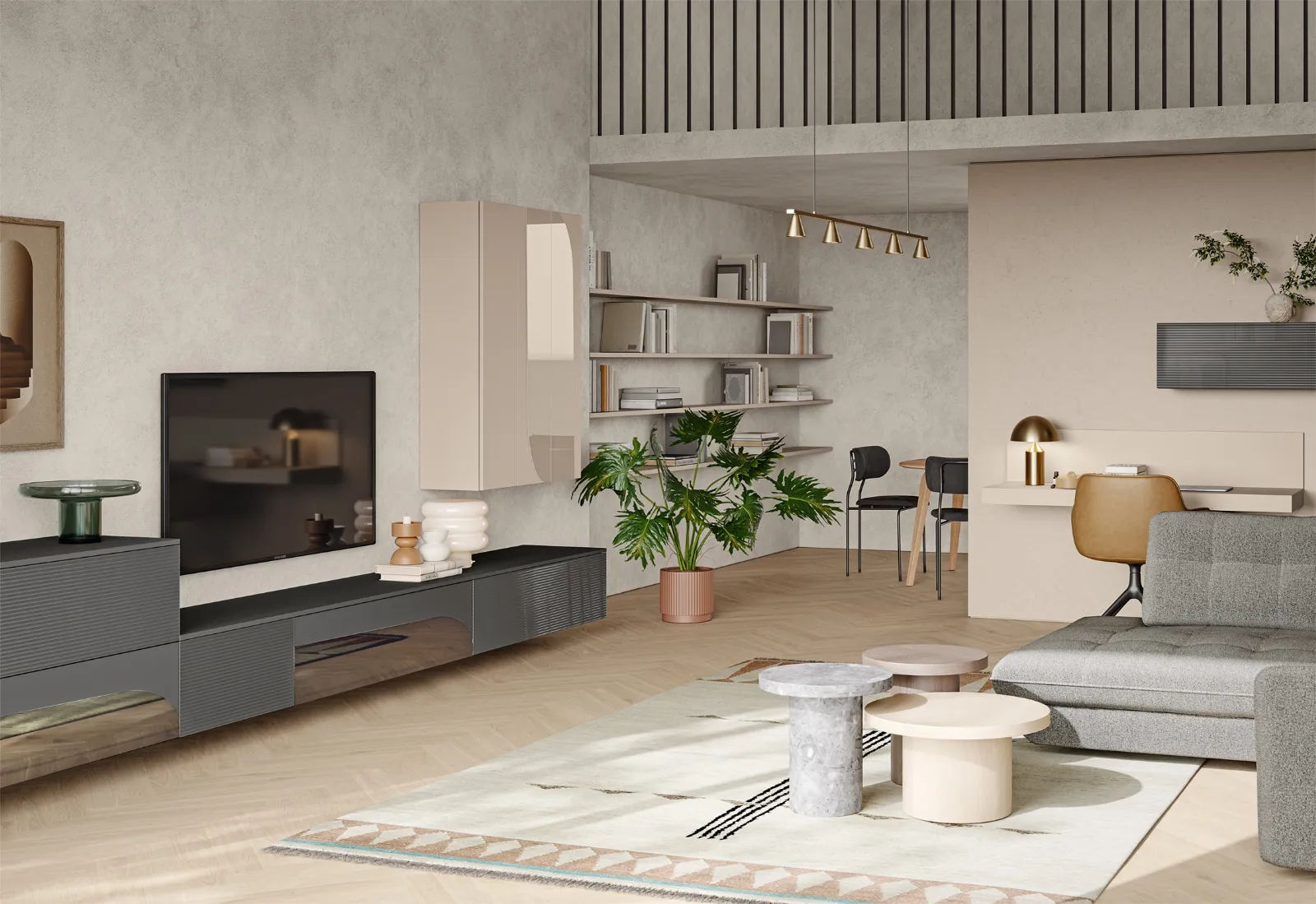 Vuoi progettare un living pratico e dinamico? Ti offriamo la parete attrezzata Eclettica EG001 Colombini Casa dalle linee decise moderne.