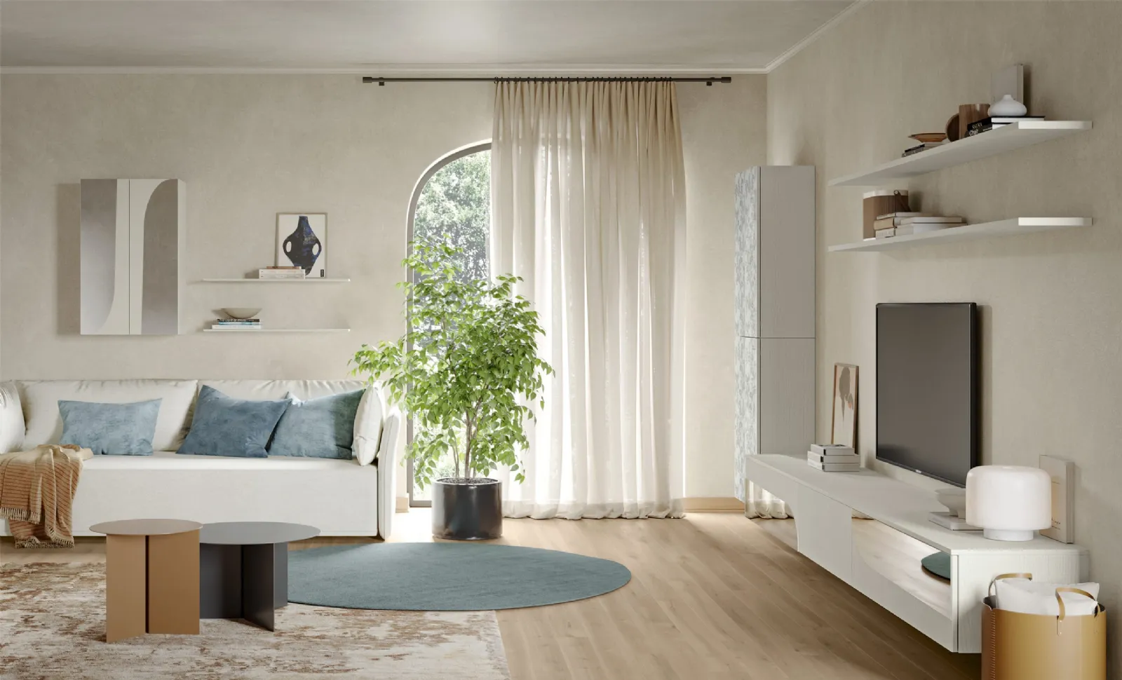 Clicca e scopri di più sulla parete attrezzata Eclettica EG004 della firma Colombini Casa: è la soluzione dalle linee moderne perfetta per te.
