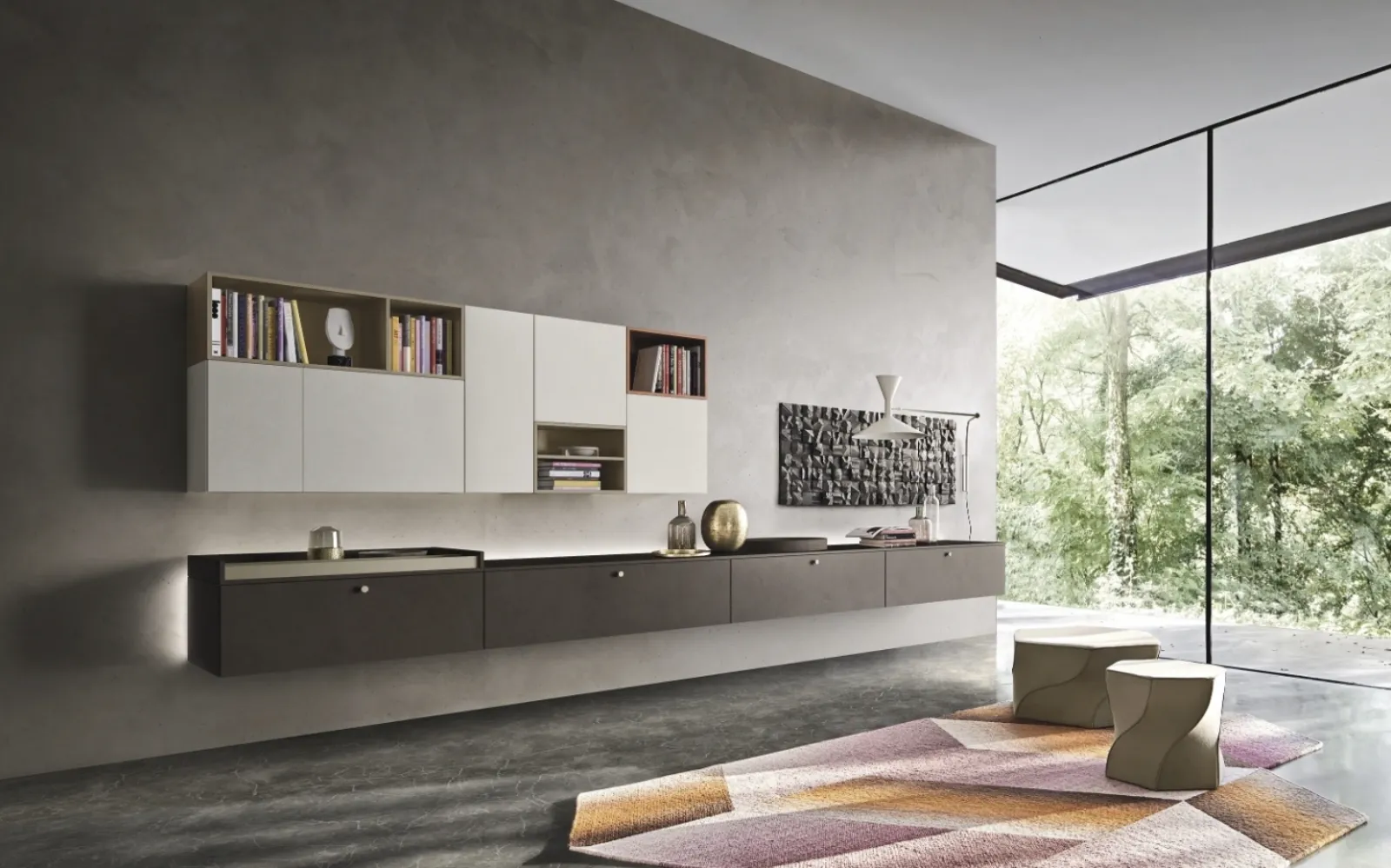 Se desideri ultimare un soggiorno operativo e pratico dalle linee moderne, ecco a te la parete attrezzata Lampo 005 Sangiacomo.