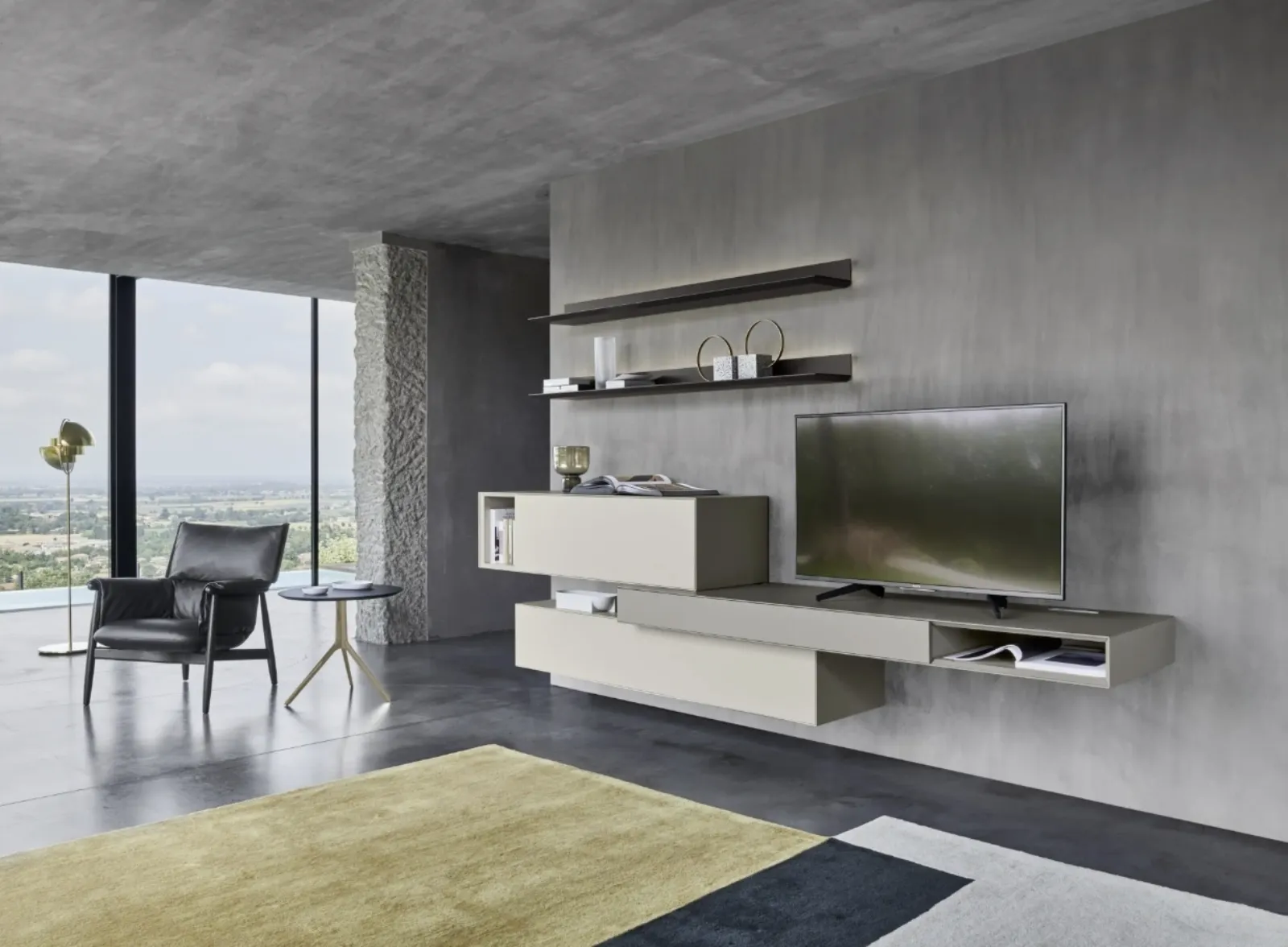 Anche in un soggiorno non troppo grande, questo tipo di arredo riesce a organizzare al meglio gli spazi ottimizzando ogni angolo e assicurando grandi doti di componibilità tipica delle soluzioni moderne. Se cerchi arredi salvaspazio e realizzabili su misura, contattaci e scopri di più sull'Arredamento Casa delle migliori marche. Un po’ librerie, un po’ contenitori ed espositori: le Pareti Attrezzate sono ideali per organizzare un luogo pratico e dinamico. La Parete Attrezzata sospesa Domino 04 di Sangiacomo nella fotografia, con finitura in laccato opaco, risolve le più particolari esigenze abitative di stile e spazio senza rinunciare alla ricerca estetica.