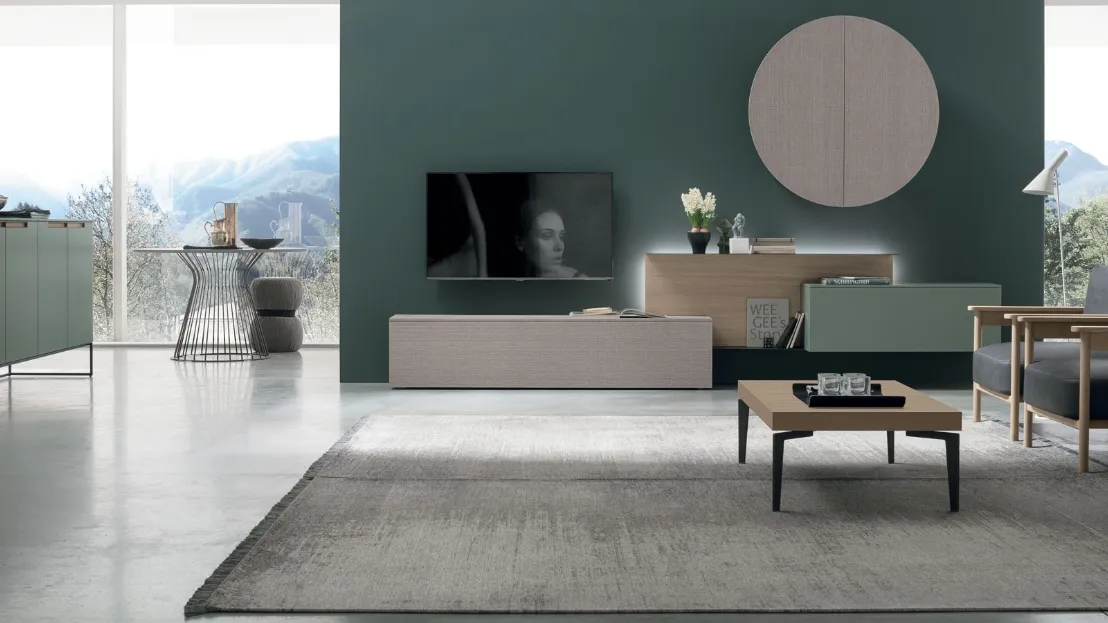 Vuoi arredare un soggiorno pratico e dinamico? Ti presentiamo la parete attrezzata Atlante UNIT AT118 Tomasella dalle forme decise moderne.