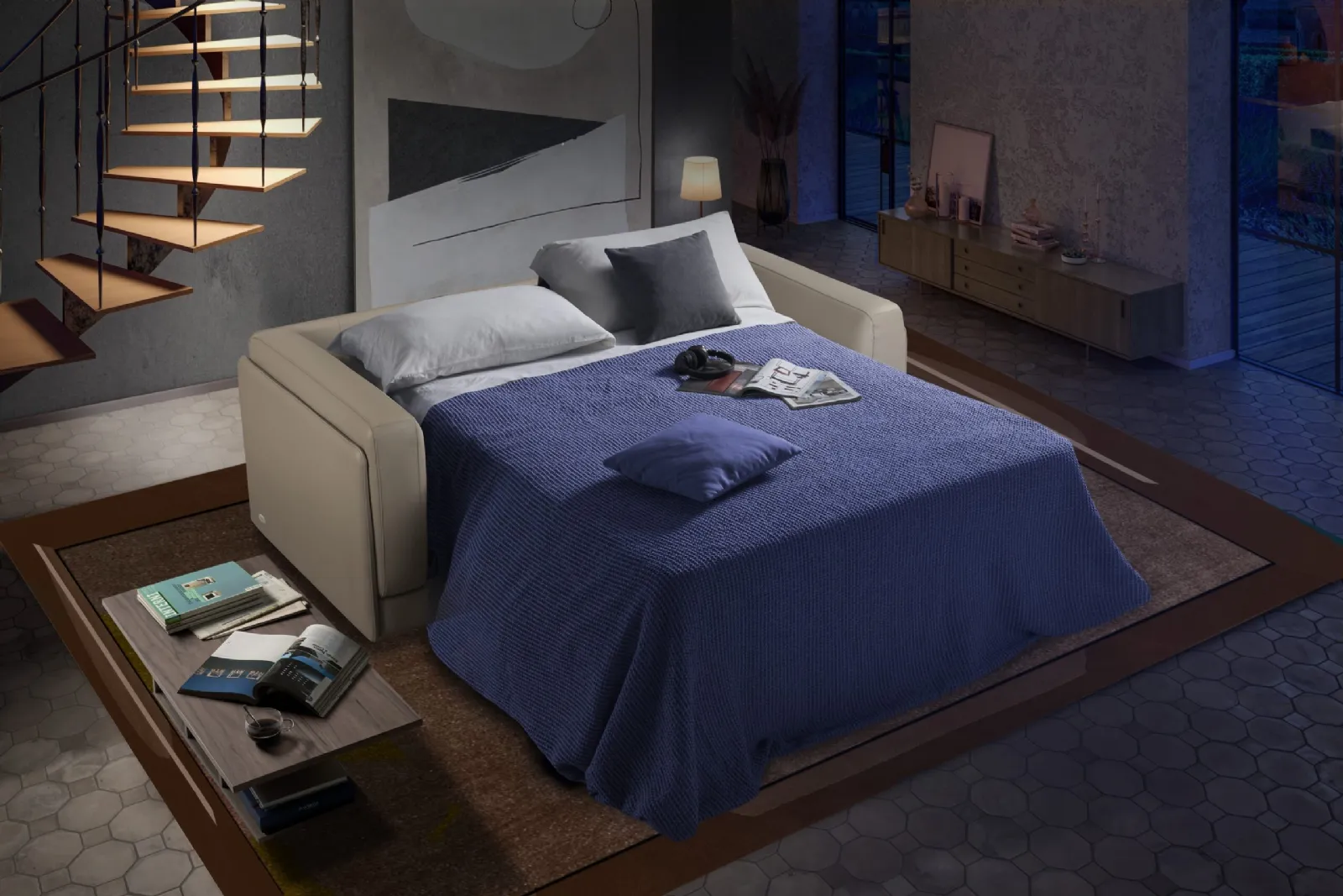 In negozio potrai trovare una vasta collezione di divani con letto, alcuni tra i componenti ideali per arredare il tuo soggiorno con stile e funzionalità. Un ricco catalogo di divani e poltrone moderni ti sta aspettando in negozio. Se vuoi uno tra i modelli di Divani moderni con divani in pelle, visitare il nostro negozio ti farà scoprire le più esclusive proposte firmate Il Benessere. Se desideri una composizione in pelle, scopri una ricca gamma di divani con letto di alto contenuto estetico. Divano Letto in pelle Massimo de Il Benessere: tutti i prodotti della firma sono sinonimo di resistenza negli anni, qualità di materiali e rivestimenti, forme decise e un design unico.