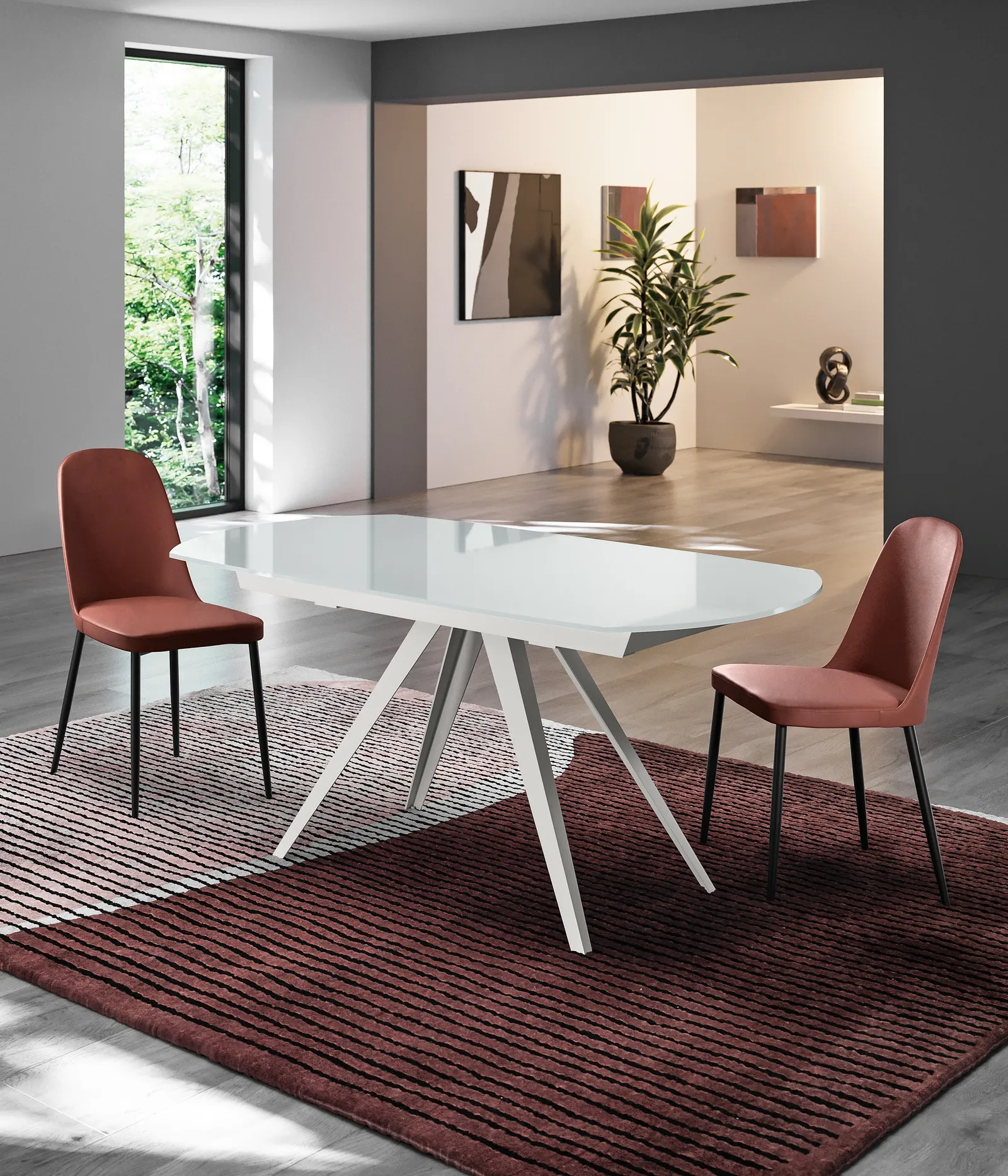 Se desideri tavoli allungabili moderni, ecco a te il modello da pranzo in vetro Kyoto Glass della marca Stones.