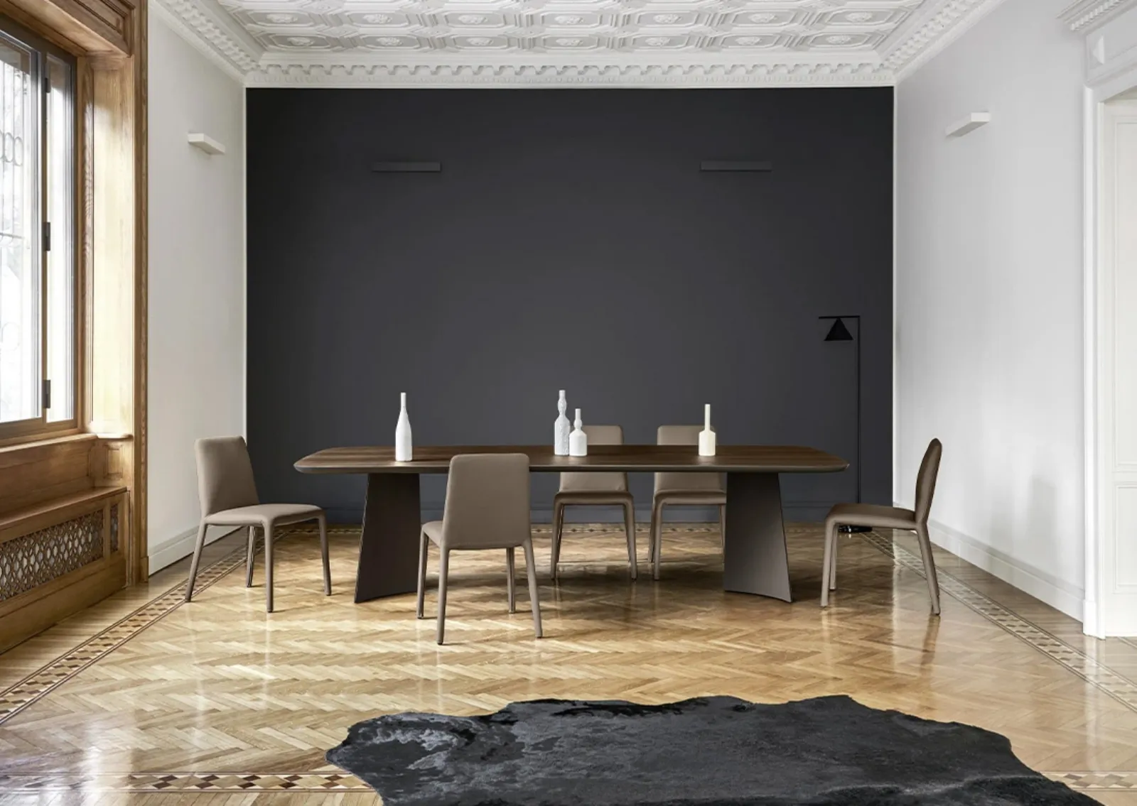 Se desideri tavoli fissi design, ti offriamo il modello da pranzo in legno Poliedro Rovere Termotrattato del brand Sangiacomo.