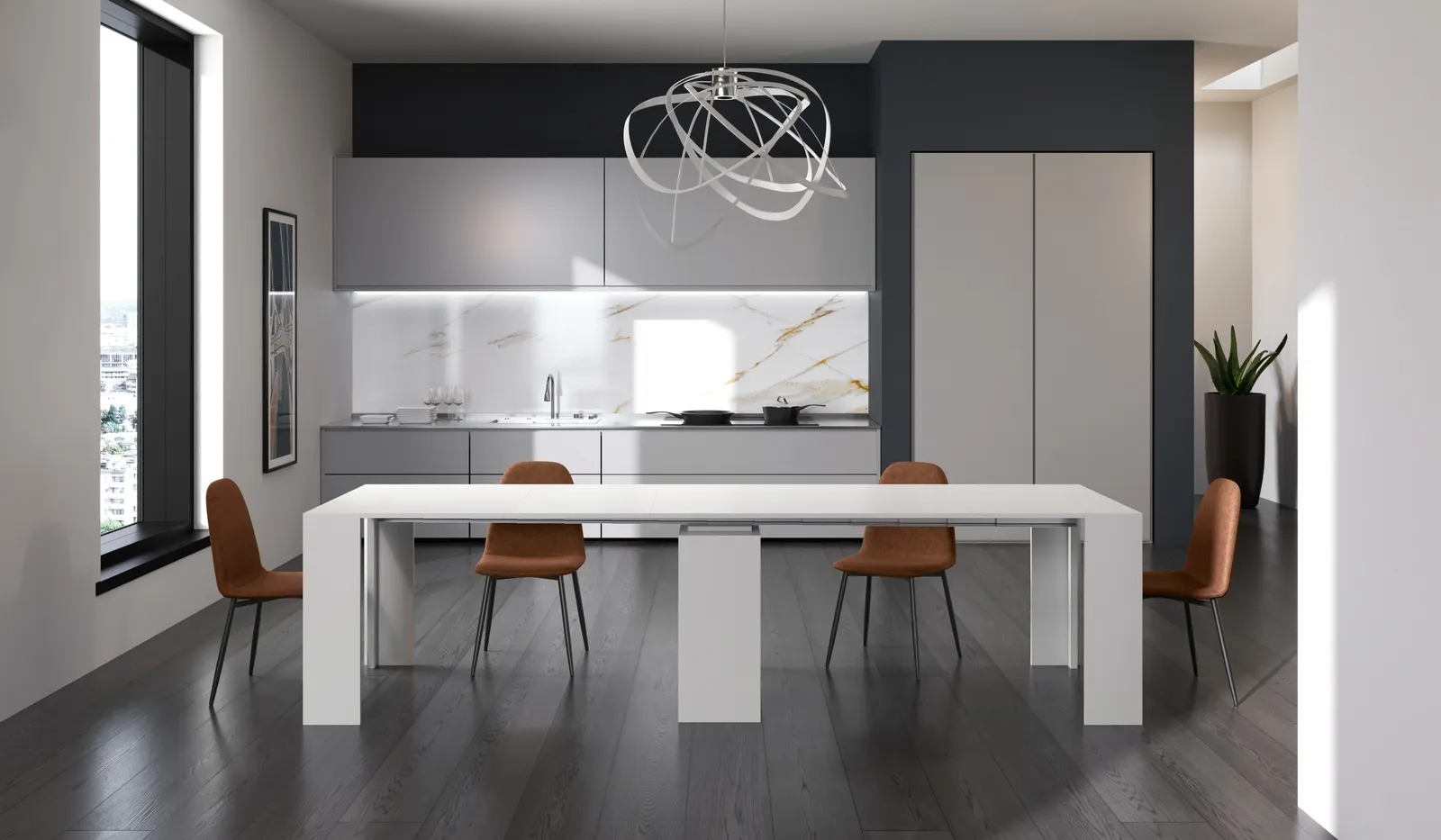 Se sei alla ricerca di tavoli moderni da pranzo, scopri i modelli consolle di Stones: clicca e scopri il modello Pinocchio in melaminico.