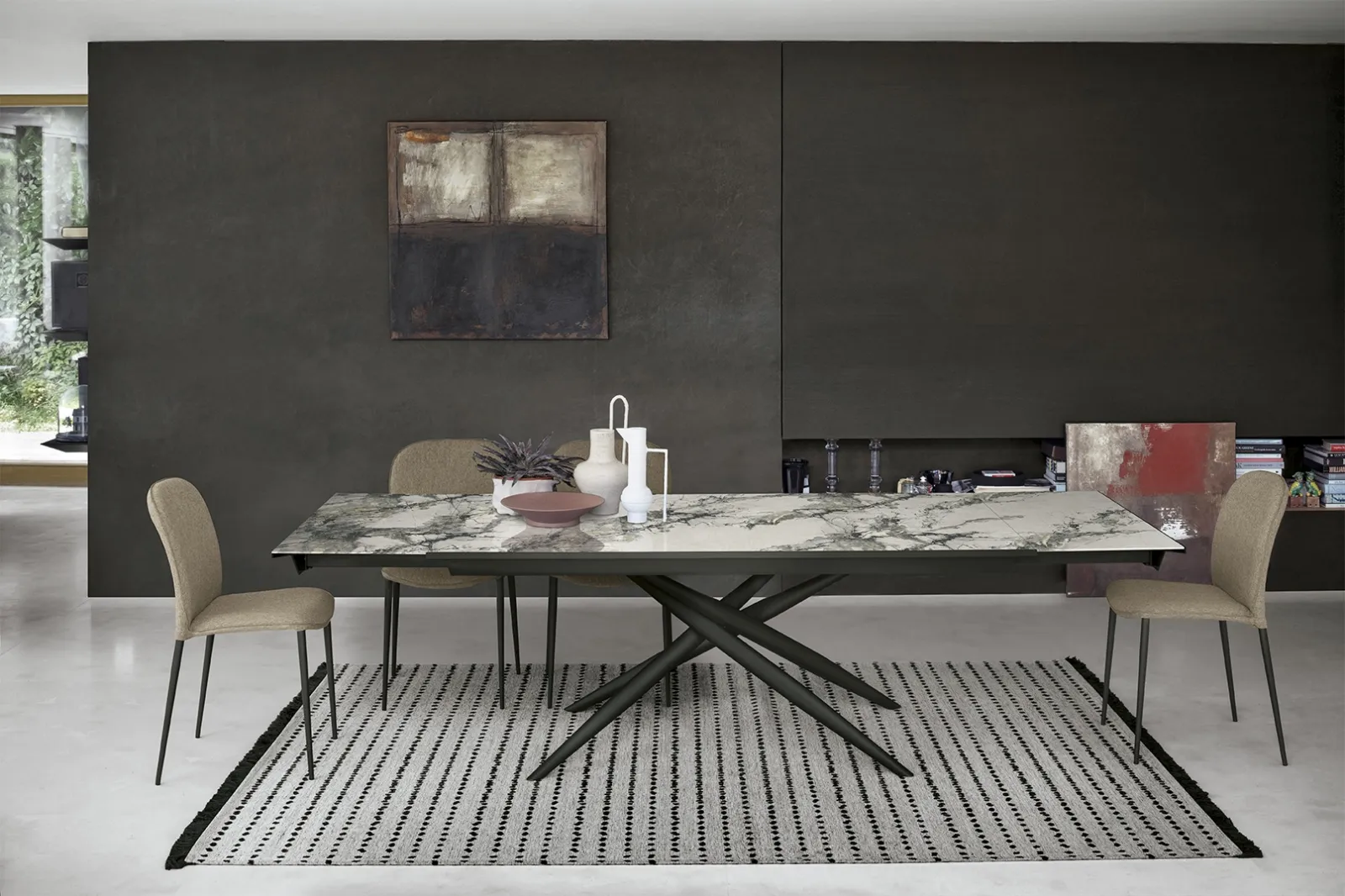 Durante l'acquisto del tavolo giusto per te è fondamentale valutare dimensioni, linee, finiture e stile, per ottimizzare lo spazio con grande valore estetico. Nel nostro sito dedicato all'Arredamento Casa potrai trovare tutto ciò di cui necessiti per il living o la cucina. In showroom ti sta aspettando un ricco catalogo di Tavoli allungabili dei migliori produttori, tra cui anche il modello da pranzo mostrato in foto. Prediligi i mobili e oggetti accessori in vetro dei migliori produttori per completare con praticità i tuoi spazi senza mai sacrificare l'estetica.