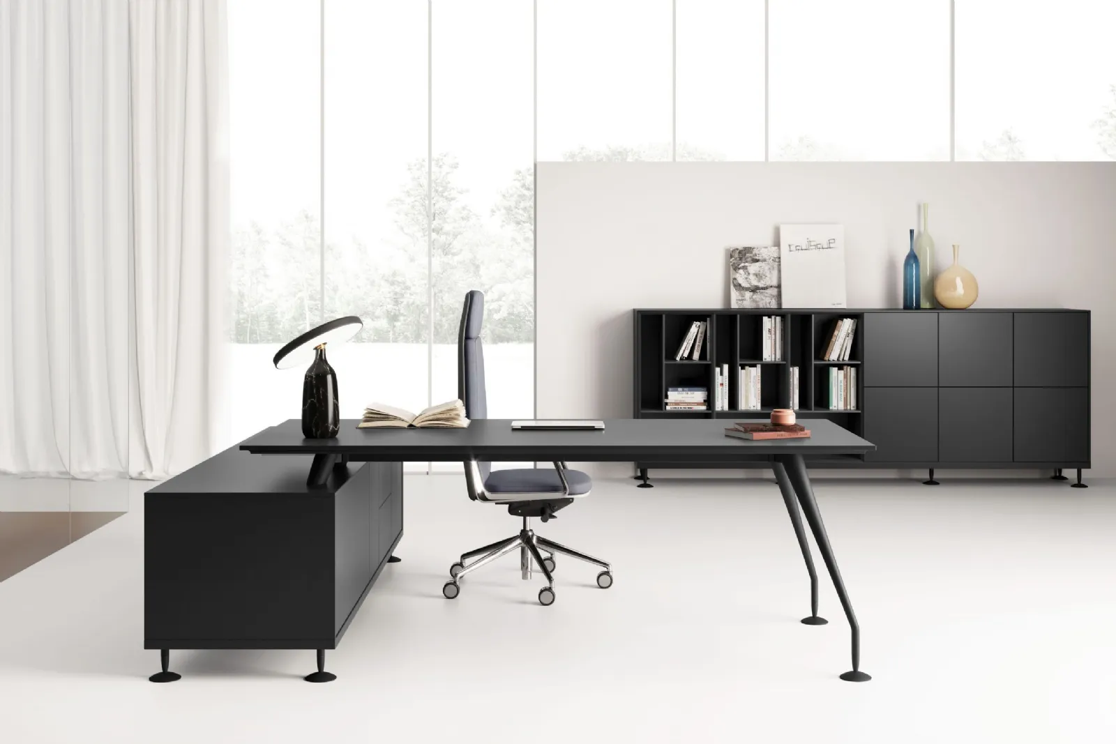 Se vuoi ultimare gli ambienti di lavoro, ecco qui il modello Enosi di Las Mobili tra diverse proposte di scrivanie direzionali.